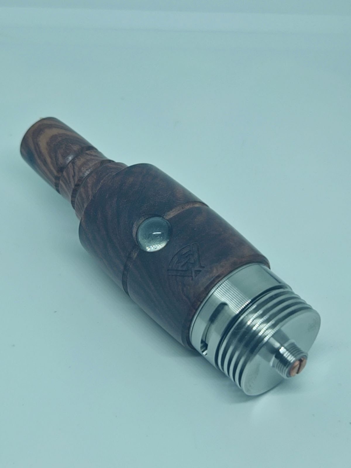 Here’s tswooden’s “mini” vaporcane. It sits only slightly short than the original, “.5 and is the same width. The main difference is that the mini uses a kanathal coil and can be used with any mod that goes past 20w. Available in rosewood